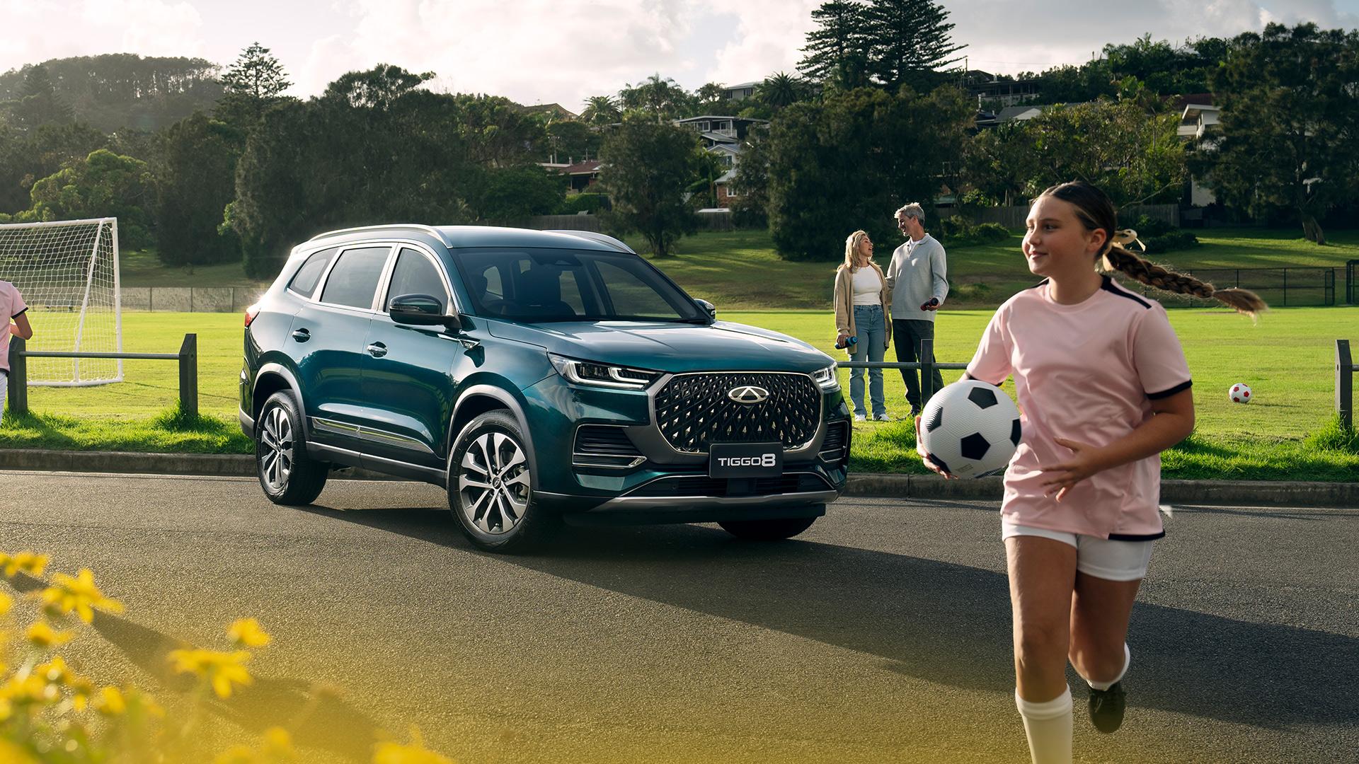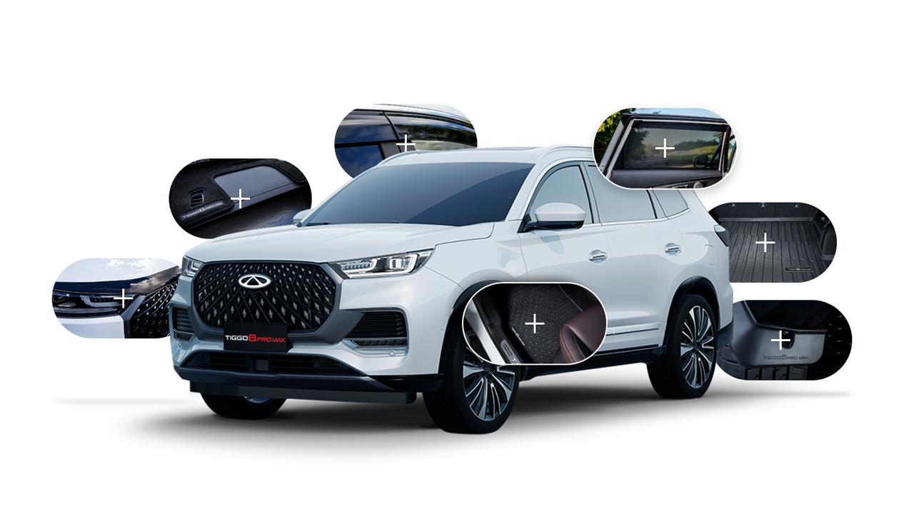Carousel: clicking the "Previous" or "Next" button changes the content between the buttons. TIGGO 8 PRO MAX—From $38,990[T5] Driveaway. Book a test drive Anchor menu Overview Colour Options Design Technology Safety Pricing Spec Accessories Book a test drive The Modern 7-Seat SUV with Unbeatable Value and Premium Features The Chery Tiggo 8 Pro Max is a modern 7-seat family SUV with advanced technology, premium design, and features that rival pricier vehicles, offering unbeatable value. The Tiggo 8 Pro Max stands out with its striking design, extensive features, and adaptability to your lifestyle. Today, we'll show you why the Tiggo 8 Pro Max is the perfect choice for your next family car.Discover More 2.0L Turbocharged Petrol Engine 180kW/375Nm Max Power/Torque 7-Seater Large SUV 8.1L / 100km* Fuel Consumption *Urban and Elite only. 8.7L/100km applies to Ultimate AWD. ADR 81/02. The all-new Chery Tiggo 8 Pro Max With more seats, more tech, more safety and a 2.0L turbocharged engine the Tiggo 8 Pro Max delivers unbeatable value for a 7-seat SUV. It’s got everything you need for the road ahead and more. Carousel: clicking the "Previous" or "Next" button changes the content between the buttons. Tiggo 8 Pro Max Ultimate Colour Options Colour: Aurora Green *Images are for illustrative purpose only. Preproduction vehicles shown. Local specification may vary. Form and function in perfect harmony Considered design More style The Tiggo 8 Pro Max makes an unforgettable first impression, with dynamic styling that immediately grabs your attention. From the distinctive diamond-shaped front grille to the signature taillight design, it captivates from every angle. Car Features Style From The Ground UpThe Tiggo 8 Pro Max features stylish Alloy Wheels* that provide a dynamic finish.*18” Alloy on Urban & Elite. 19" Alloy on Ultimate AWD. Breathtaking SunroofThe panoramic sunroof* in the Tiggo 8 Pro Max creates a sense of openness and freedom.*Ultimate AWD Only. Unmistakable, Even From BehindThe unique design of the tail lights on the Tiggo 8 Pro Max give it a distinctively striking appearance. Intelligently designed luxury interiors Intelligent Design these images appear larger in the gallery lightbox More luxury and comfort Step into the spacious cabin and discover a quieter, more refined drive. Diamond stitched upholstery, an electric tailgate, customisable ambient lighting and N95 level air quality management make the Tiggo 8 Pro Max a roomy retreat from the chaos of family life. Spacious Seating For 7The Tiggo 8 Pro Max seats 7 in complete comfort, with a range of amenities for every occupant. Premium Materials And FinishesThe diamond-stitched synthetic leather upholstery in the Tiggo 8 Pro Max adds extra comfort and prestige.Overseas Model Shown. Ample, Flexible StorageWith all 7 seats in use, the Tiggo 8 Pro Max still offers an impressive 117 litres of cargo space*. With the third row folded this increases to 739 litres (up to roof) VDA.*VDA - Measured to the top of the 3rd row seat back. More intelligent technology More than a luxury SUV, the Tiggo 8 Pro Max is a modern technology platform built to make your drive easier. Dual 12.3-inch LCD displays present media and navigation clearly, a surroundview camera helps with parking, passive entry adds convenience, wireless charging cuts cable clutter, and the Hello Chery voice system lets you keep your hands on the wheel. Two Screen ConvenienceDual 12.3” LCD screens display useful vehicle information, controls the intuitive infotainment system and Hello Chery voice commands. Integrated DashcamAn integrated dashcam* located behind the rearview mirror can record your journey for added peace of mind.*Memory card required and not included. Available on Elite and Ultimate AWD. Wireless Charging CapabilityRecharge your compatible mobile devices by simply placing them on the convenient 50W wireless charging pad. Now available at your local Chery Dealer Book a test drive More performance for a premium drive Power meets precision Performance is at the heart of the Tiggo 8 Pro Max, with its 2.0L turbocharged engine producing an impressive 375Nm of torque. Power is harnessed by an intelligent AWD* system and 3-drive modes, ensuring exhilaration every time you get behind the wheel. Astonishing PerformanceThe Tiggo 8 Pro Max is powered by a 2.0L turbocharged engine that produces 375 Nm of peak torque. Power, HarnessedAn advanced 7 Speed Dual Clutch Transmission (DCT) transmits the engine’s power smoothly to the road. 3 Drive ModesChoose from a range of drive modes, including Eco, Normal and Sport modes.**Ultimate AWD also features off-road modes. The ultimate peace of mind Safety More safety to protect what matters most, your family Awarded a 5-star ANCAP safety rating, the TIGGO 8 Pro Max has been designed with a safety-first approach, featuring an array of 10 airbags and 18 driver-assistance systems ensuring every journey is as safe as it is enjoyable. 18 Chery smart driver assistance systems [C] Lane departure warning Lane departure prevention Traffic jam assist Driver monitoring system Rear cross traffic alert Speed limit information function See rest of Chery Smart Driver Assistance Systems Blind spot detection Front collision warning Emergency lane keeping Adaptive cruise control Speed control assist Integrated cruise assist Autonomous emergency braking Rear cross traffic braking Tiggo 8 Pro Max Grades Pricing Tiggo 8 Pro Max (Urban) Driveaway from $38,990 [T5] Included features:18" alloy wheelsDual 12.3" LCD screens8 Speaker Sony™[2] Sound SystemHeated & Ventilated front seats360° Around View Monitor50W Wireless Charging Tiggo 8 Pro Max (Ultimate) Driveaway from $43,990 [T7] In addition to Urban:Power tailgateInbuilt dashcamRetractable Cargo CoverIlluminated Front Door SillsThird Row Air VentsAll Wheel Drive (AWD)19” Alloy WheelsPanoramic sunroofPrivacy glass10 Speaker Sony™[2] Sound SystemFragrance system[3] Specifications Specifications Dime