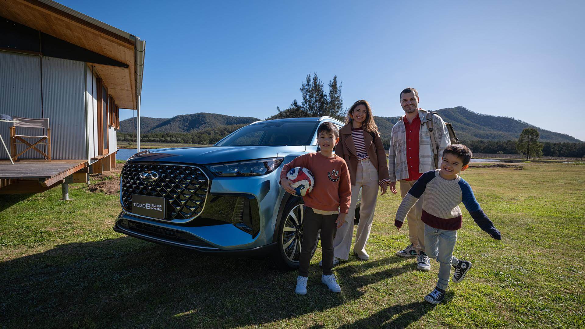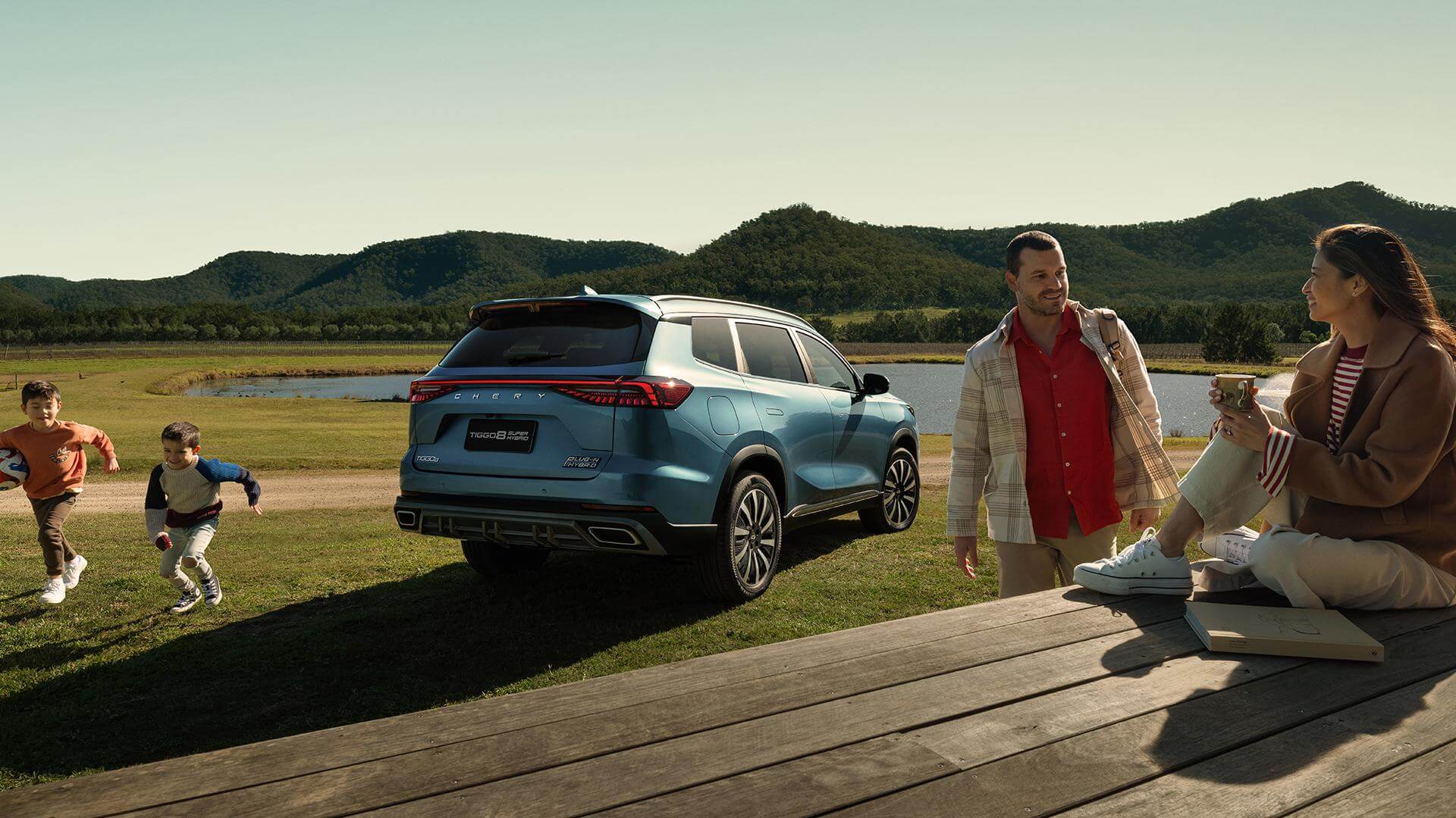 Carousel: clicking the "Previous" or "Next" button changes the content between the buttons. TIGGO 8 SUPER HYBRID—Go Further. Bring More. Book a test drive Anchor menu Overview Colour Options Design Technology Safety Performance Pricing Spec Warranty Book a test drive 1,200 km Combined Range[⨍] 1.5L Turbocharged Hybrid Engine 1.3L/100km Fuel consumption – combined** 7-seater Large SUV INTRODUCING THE ALL-NEW TIGGO 8 SUPER HYBRID Built for life that never stands still, the Chery Tiggo 8 Super Hybrid grows with you. With seven seats, clever storage, and Super Hybrid technology, it’s ready to go wherever life leads. No matter the journey, it keeps pace, and makes room for more along the way. Carousel: clicking the "Previous" or "Next" button changes the content between the buttons. Why does your next EV have to be an EV?Super Hybrid gives you the best of both worlds — electric drive in the city, petrol backup for the open road.No range anxiety. No charging pressure. Just smarter driving. Best of All WorldsDelivering up to 1,200 km of combined range[⨍] and 1.3 L/100 km fuel consumption**, Chery's Super Hybrid system pairs a turbo engine with an electric motor. The 18.4 kWh battery is protected by an 8-year unlimited-km warranty. Flexible ChargingPlug in (DC fast charging compatible) for up to 90 km^ pure EV range, or let the system self-charge through braking and the petrol engine—performance stays the same even if you never plug in. Seamless EfficiencyIntelligent drive management automatically chooses the most efficient power source. Enjoy silent, smooth EV commuting when charged, and rely on petrol power for long trips—no range anxiety. Explore Super Hybrid Your colour, your way Colour Options Colour: Azure Blue *Premium paint - available at additional cost. Exact colours may vary. Consult your dealer for all variety and tones available. Aesthetics and utility, perfectly aligned Considered design For every chapter of your story The Tiggo 8 Super Hybrid commands attention instantly, creating a lasting first impression with its dynamic styling. From its standout diamond-patterned grille to the unique signature taillights, it's designed to captivate from every viewpoint. Car Features Style From The Ground UpThe Tiggo 8 Super Hybrid features stylish Alloy Wheels that provide a dynamic finish. Breathtaking SunroofThe panoramic sunroof* in the Tiggo 8 Super Hybrid creates a sense of openness and freedom.*Ultimate Only. Overseas Model Shown. Unmistakable, Even From BehindThe unique design of the tail lights on the Tiggo 8 Super Hybrid give it a distinctively striking appearance. The immediate sense of luxury Intelligent Design these images appear larger in the gallery lightbox Luxurious comfort Step into the generously appointed cabin of the 7-seat Tiggo 8 Super Hybrid, where exceptional luxury awaits. Meticulously crafted with an abundance of premium materials—including exquisite diamond-stitched upholstery, a convenient electrically operated tailgate (on Ultimate), customizable ambient lighting it offers a serene and welcome sanctuary from the demands of the outside world. Spacious Seating For 7The Tiggo 8 Super Hybrid seats 7 in complete comfort, with a range of amenities for every occupant. Premium Materials And FinishesThe diamond-stitched synthetic leather upholstery in the Tiggo 8 Super Hybrid adds extra comfort and prestige. Ample, Flexible StorageWith all 7 seats in use, the Tiggo 8 Super Hybrid still offers impressive cargo space, which increases significantly when the third row is folded. Elevate Your Family's Lifestyle Intuitive technology Intelligence in motion More than just a remarkable luxury SUV, the Tiggo 8 Super Hybrid also serves as an advanced technology platform. It seamlessly integrates a comprehensive array of intelligent and intuitive features, including 15.6" LCD Touch screen, a surround view camera, passive entry and start, wireless device charging, and the 'Hello Chery' voice command system. Two Screen Convenience10.25” LCD driver instrument cluster and 15.6” LCD infotainment touch screen display useful vehicle information, controls the intuitive infotainment system and Hello Chery voice commands. Wireless Charging CapabilityRecharge your compatible mobile devices by simply placing them on the convenient 50W wireless charging pad. The ultimate peace of mind Safety Safety from the start The Tiggo 8 Super Hybrid has been designed with a safety-first approach, featuring an array of 9 airbags and advanced driver-assistance systems ensuring every journey is as safe as it is enjoyable. Chery smart driver assistance systems [C] Lane departure warning Lane departure prevention Traffic jam assist Driver monitoring system Rear cross traffic alert Speed limit information function See rest of Chery Smart Driver Assistance Systems Blind spot detection Front collision warning Emergency lane keeping Adaptive cruise control Speed control assist Integrated cruise assist Autonomous emergency braking Rear cross traffic braking A Powerful, Premium Drive Performance Chery Super Hybrid With a combined range up to 1,200km including up to 90km of pure electric range, the Chery Super Hybrid (CSH™) system is built to take you further with ease. Enjoy smooth, responsive power and impressive range that gives you the freedom to drive your way. With Chery Super Hybrid technology under your bonnet, you’re in charge and ready for whatever lies on the road ahead. Carousel: clicking the "Previous" or "Next" button changes the content between the buttons. Play Play Play Hear What the Experts SaySince its arrival in Australia, the all-new Chery Super Hybrid range has quickly captured widespread attention and high praise from numerous authoritative auto media outlets. From its revolutionary hybrid technology and unparalleled value to its outstanding quality and design, professional reviews have been overwhelmingly positive. Here’s a glimpse of what they're saying. NEWS.COM.AU“